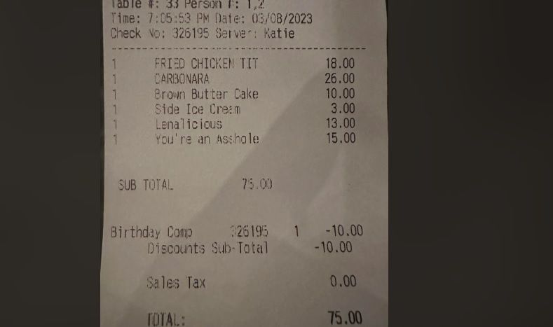 Jedan se Amerikanac javio na Redditu u viralnoj objavi koju je naslovio: “Moj račun za večeru imao je poruku za mene”, a koja je ljude nasmijala do suza. Objavio je fotografiju računa iz restorana Westgate Bourbon Bar and Tap House u Beavertonu u Oregonu na kojem je bila ispisana jedna neobična stavka.