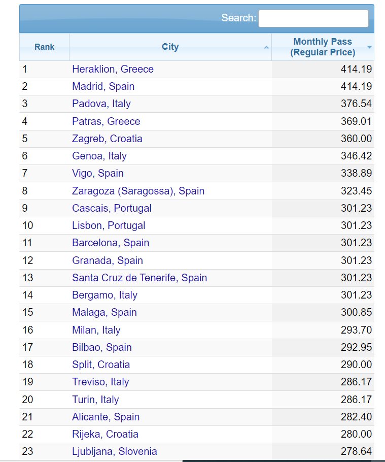 Što se tiče pojedinačne karte za jednu vožnju, riječka autobusna karta (10kn za jednosmjernu vožnju) se trenutno nalazi na 169. mjestu u Europi (od ukupno 241 gradova) a prema novoj cijeni (12 kn), riječka karta za jednu vožnju bi skočila na 136. mjestu, u rangu s portugalskom Bragom (11.67 kn), grčkim Patrasom (12.05 kn) i portugalskom Coimbrom (12.05 kn).
