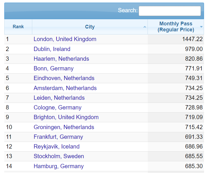 Usporedbe radi, najskuplja mjesečna karta u Europi je ona u Londonu – čak 1447 kuna! Ako se želite kretati po Londonu u javnom prijevozu, to će vas koštati 33% skuplje od 2. grada na ljestvici Dublina u Irskoj. Nepotrebno je reći da su osobna primanja u spomenutim europskim gradovima kudikamo veća od onih u Rijeci.
