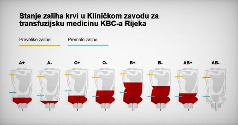 Crveni križ Rijeka i KBC Rijeka pozivaju građane, davatelje krvi i one koji će to postati, da zbog nedostatnih zaliha hitno daruju krv na Kliničkom zavodu za transfuzijsku medicinu KBC-a Rijeka.