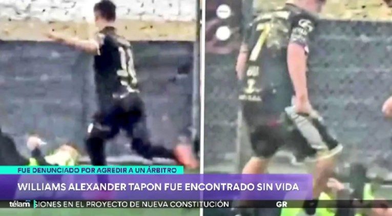 Argentinski nogometaš Alexander Williams Tapón pronađen je mrtav s prostrijelnom ranom na glavi u blizini gradića Sarandija. Preminuli nogometaš je prije nekoliko dana brutalno premlatio suca tijekom jedne utakmice amaterske lige u Argentini. Na snimci koja je postala viralna vidi se kako se Tapón zalijeće na suca nakon što je ovaj dao crveni karton njegovom suigraču. Dva puta ga je šakom udario u glavu, a nakon što je sudac bio na podu, udario ga je i nogom.
