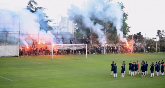 Tijekom treninga Riječana na pomoćnom igralištu kampa Rujevica, igrače je bakljadom došla ohrabriti Armada uoči polufinala Kupa protiv Osijeka koji se igra u nedjelju u 20:15 sati. Podsjetimo, utakmica se zbog mjera opreza zbog koronavirusa igra bez publike, navijači su se zaželjeli natjecateljskih utakmica što su i dokazali ovom podrškom.