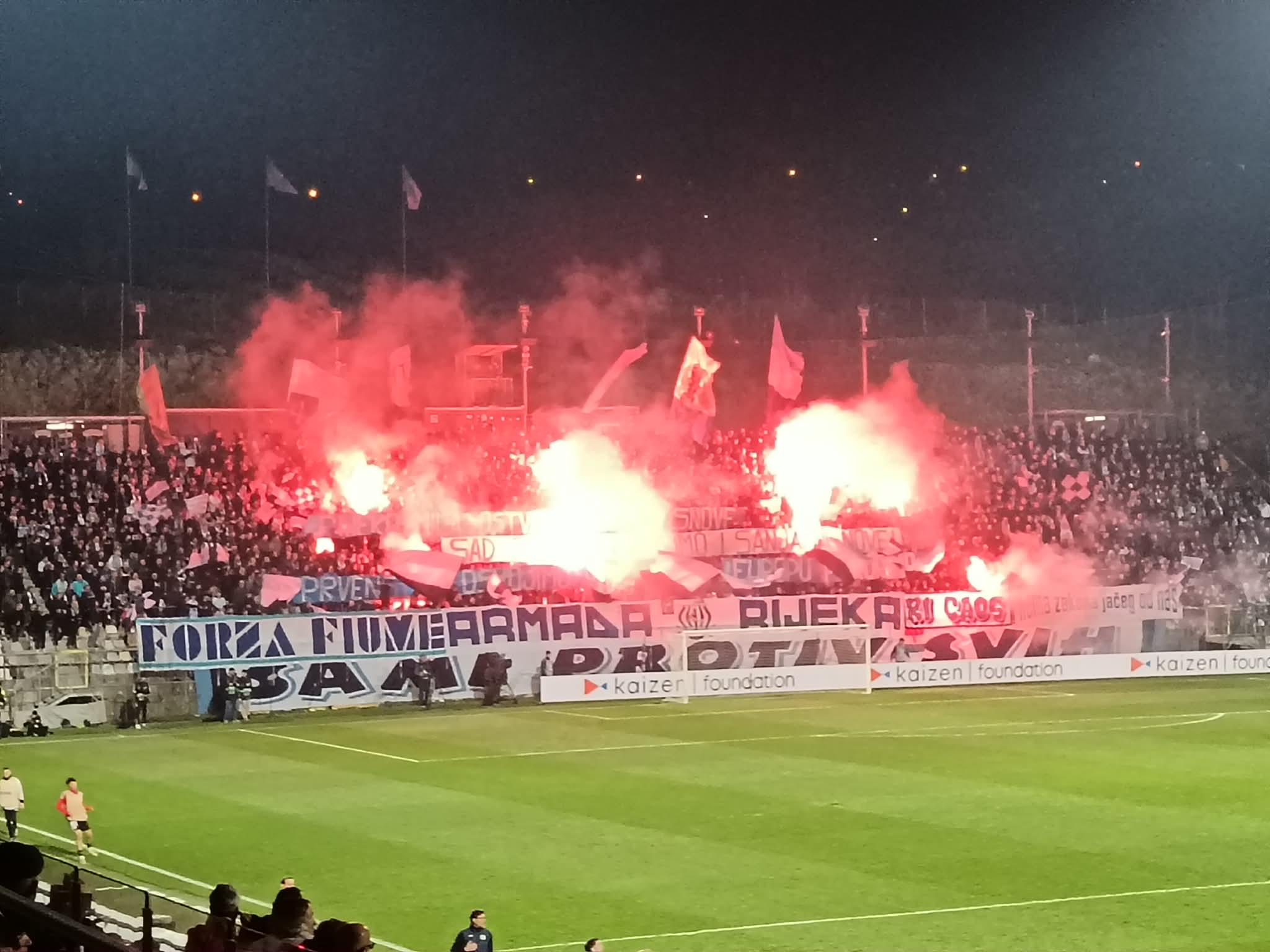 U 60. minuti utakmice između HNK Rijeka i RC Strasbourg Alsace na Rujevici, navijači Armade razvili su veliki transparent koji je brzo privukao pažnju cijelog stadiona.