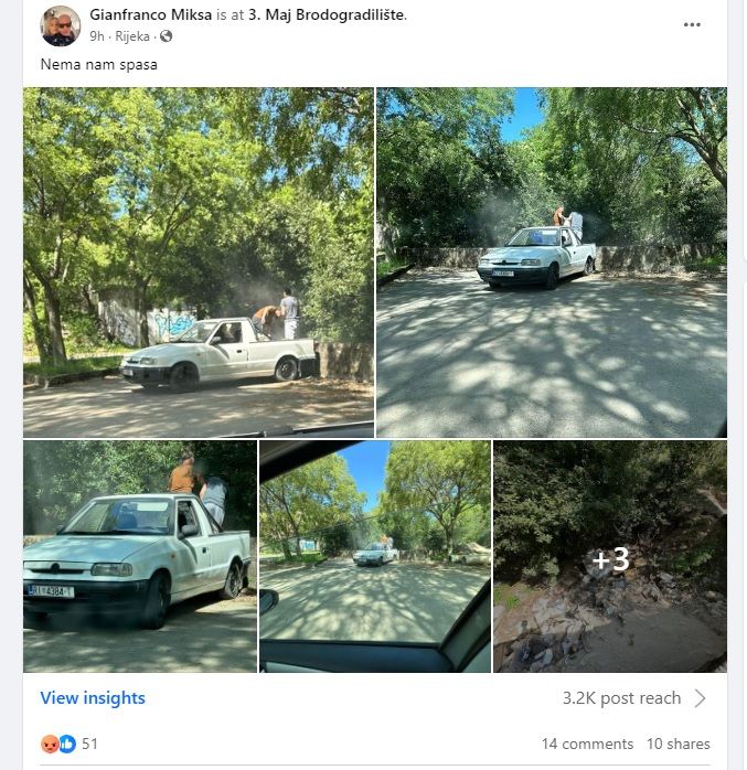 Jučer je našoj grupi Dnevna doza riječkog nereda naš čitatelj prijavio slučaj bacanja građevinskog otpada u prirodu. Gianfranco Miksa se nalazio u blizini Brodogradilišta 3. maj kada je vidio parkirano vozilo iz kojeg su radnici vadili otpad i bacali ga direktno u prirodu. Slučaj je snimio i prijavio komunalnim redarima.