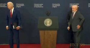Američki predsjednik Joe Biden jedan je od sudionika Opće skupštine UN-a, koja se održava od 18. do 22. rujna u New Yorku, a tom je prilikom “ponovio” incident po kojem je već poznat. Biden (80) je, naime, održao govor zajedno s brazilskim predsjednikom Luizom Inácijem Lula da Silvom, nakon čega je napustio UN-ovu pozornicu bez … Continue reading Biden se prvo zabio u brazilsku zastavu, a onda potpuno izludio brazilskog šefa države: ‘Predsjedniče, čujete li me?’