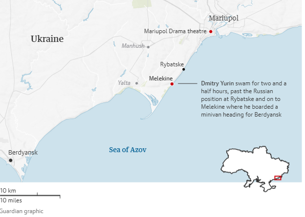 Jurin je rekao da se vratio u garažu u kojoj se skrivao s majkom Nadeždom, zapalio cigaretu i progutao tablete. Odlučio je da se mora izvući iz Mariupolja, koji su ruske snage napadale i opsjedale dva užasna tjedna. Grad je bio odsječen sa svih strana.