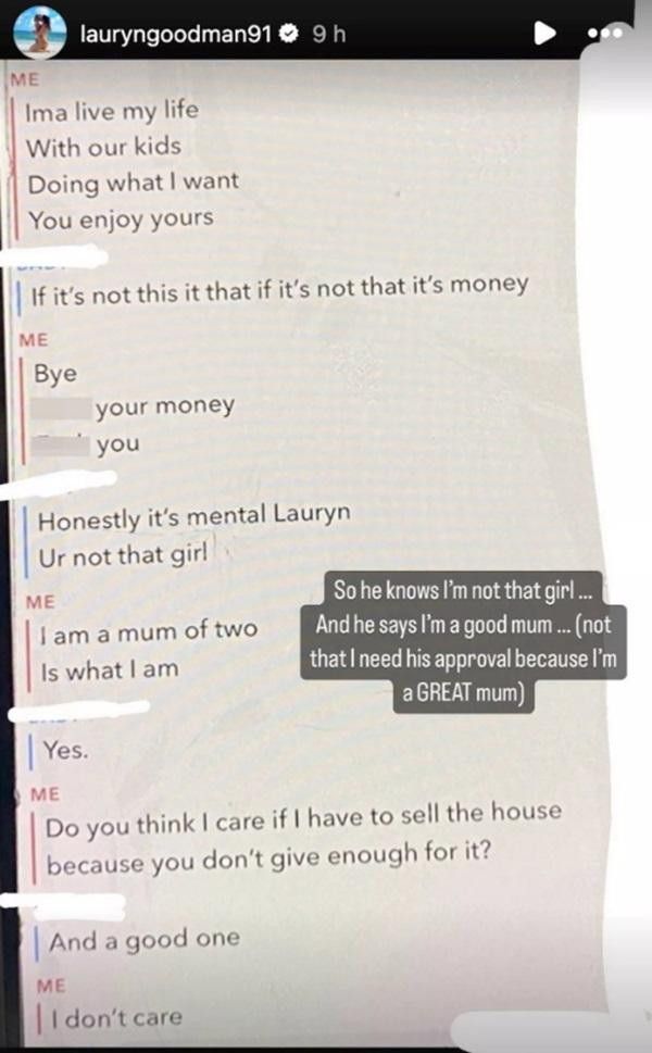 Lauryn i Kyle završili su na sudu zbog borbe za uzdržavanje djeteta. Tijekom sudske rasprave, sudac ju je opisao kao “tešku, nerazumnu i zahtjevnu”. Goodman je nakon toga podijelila niz poruka za koje tvrdi da su od Walkera, uključujući one u kojima on izražava želju da vidi svoje dijete i u kojima ga opisuje kao “sjajnu mamu”.