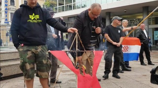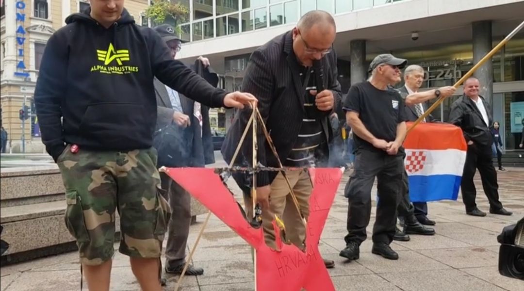 Grupica građana predvođena Draženom Kelemincom, predsjednikom marginalne Autohtone – Hrvatske stranka prava okupila se na prosvjedu „genocidne komunističke petokrake zvijezde”. Na prosvjed su tokom tjedna pozivali ustaškim pozdravom.