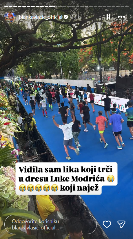 Tijekom boravka podijelila je i trenutak koji joj je privukao pažnju na društvenim mrežama. Blanka je primijetila trkača koji je nosio dres Luke Modrića: “Vidjela sam lika koji trči u dresu Luke Modrića. Koji najež.” Objavu su brzo primijetili njezini pratitelji i reagirali u velikom broju.