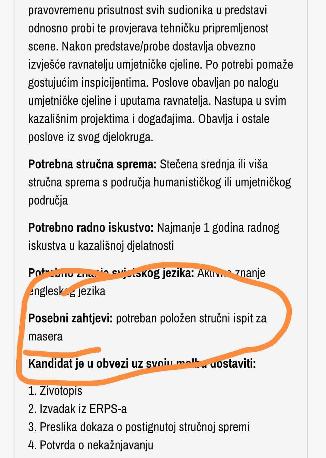 Takva je barem bila deficinicija do sada. Međutim, sudeći po novoobjavljenom natječaju, vodstvo riječkog kazališta opseg poslova inspicijenta vidi na nešto kreativniji način. Prema objavljenom natječaju, obavezan uvjet za novootvoreno radno mjesto je i položen stručni ispit za masera.