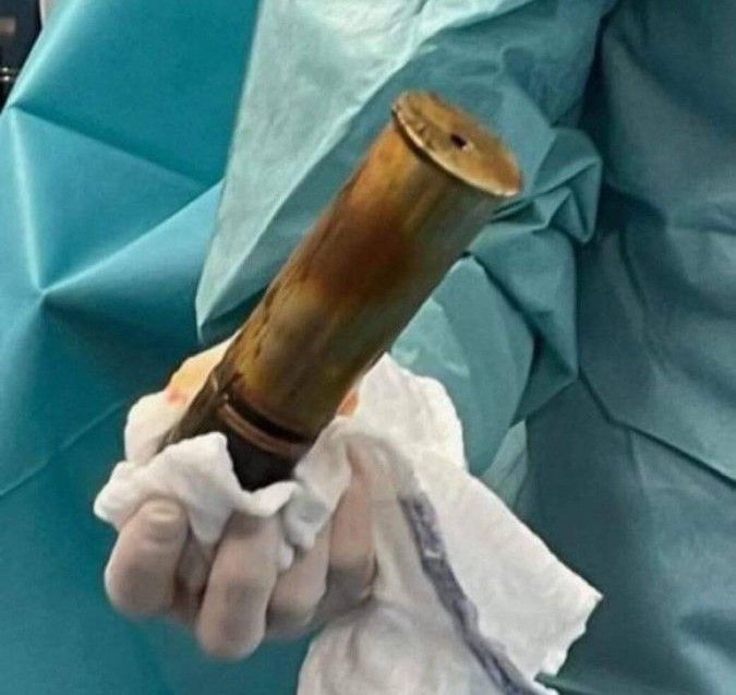 Bomba je bila dugačka 20 centimetara i široka više od 5 centimetara, a uklonjena je iz čovjeka operacijom kojom je izašla kroz njegov abdomen.