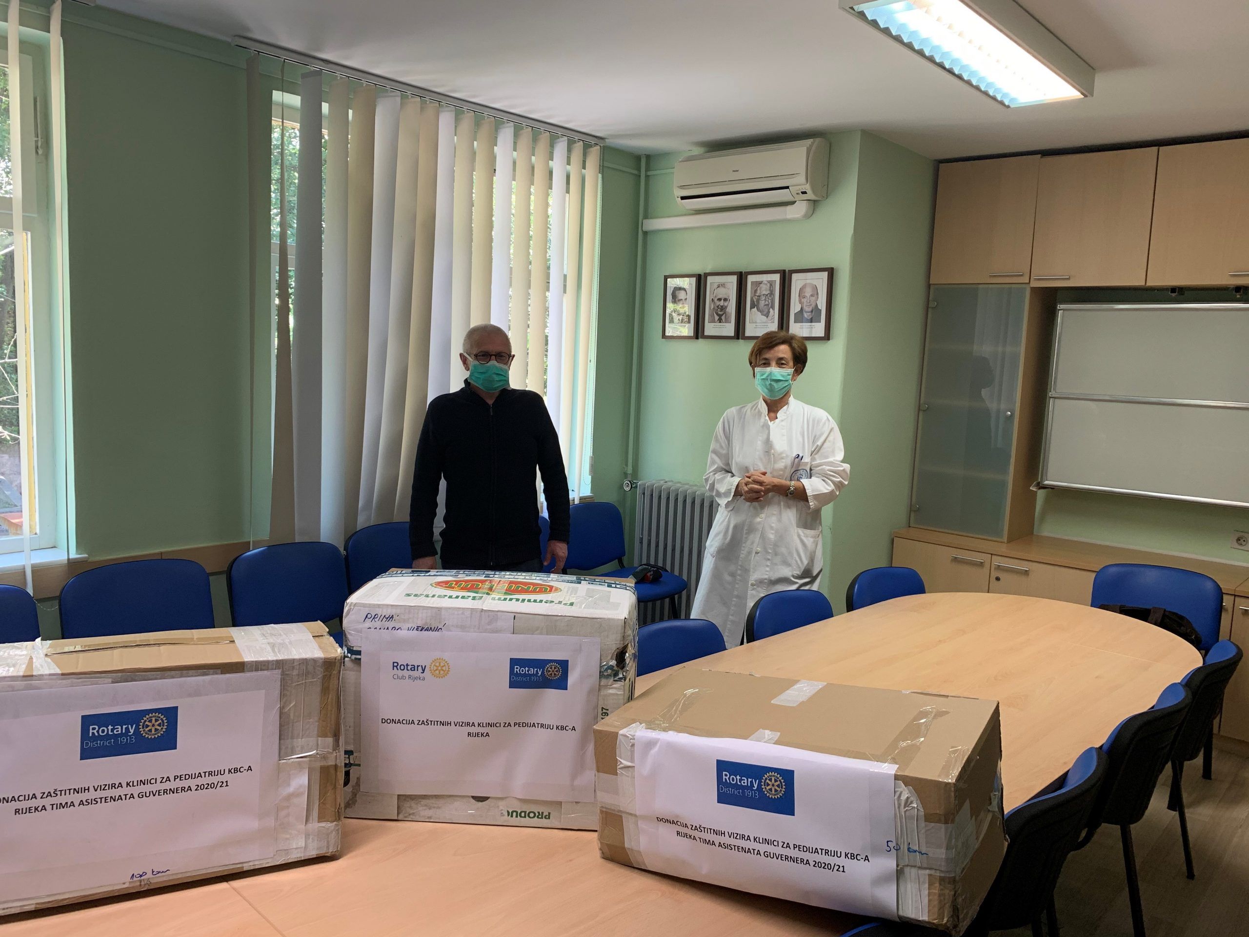 Rotary klub Rijeka donirao je 1000 zaštitnih vizira od čega 800 vizira Domu zdravlja PGŽ za potrebe sustava primarne zdravstvene zaštite čiji su djelatnici među prvima izloženi opasnosti zaraze virusom COVID-19 te 200 vizira Klinici za pedijatriju Kliničkog bolničkog centra Rijeka koja je jedan od centara opremljenih za zbrinjavanje djece oboljele od COVID-19.