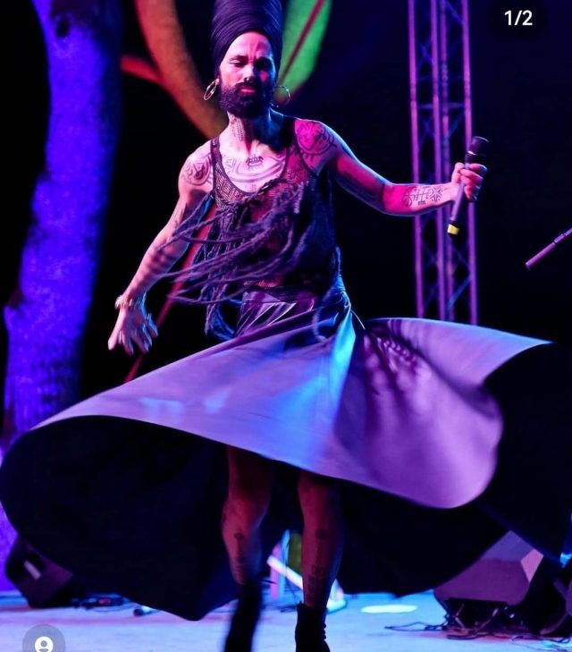 Božo je na sebi imao zanimljivu mrežastu majicu s resama, koju je upotpunio dugom ljubičastom haljinom koja mu je sezala do ispod koljena i vijorila se za njim dok se okretao.