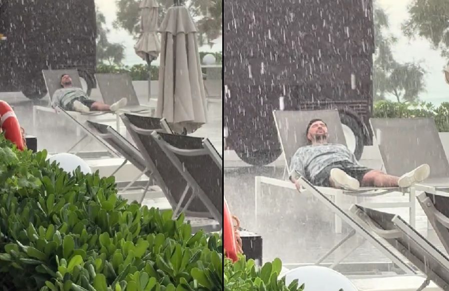 Umjesto da se povuče u zatvoreni prostor, Kieran je odlučio iskoristiti trenutak na svoj način. Na svom TikTok profilu objavio je video u kojem leži na ležaljci zatvorenih očiju dok ga kiša natapa.