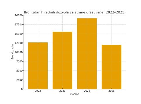Prema službenim podacima Policijske uprave, u 2022. godini izdano je 12.644 radnih dozvola, dok je brojka u 2023. porasla na 15.512 dozvola. U 2024. godini zabilježen je daljnji rast s 19.180 izdanih dozvola, a u prvih osam mjeseci 2025. godine izdano je 11.953 dozvola. Važno je napomenuti da od 1. siječnja. 2025 godine, radne dozvole se odobravaju na rok do tri godine kao biometrijska isprava.
