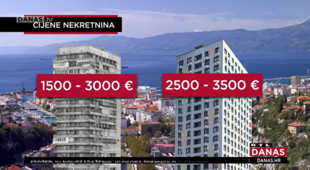 Naime, sada stan u Rijeci, u starijim zgradama, po kvadratu košta od 1.500 do 3.000 eura, u novogradnji od 2.500 do 3.500 eura. U Opatiji je četvorni metar od tri do čak deset tisuća. Prije tjedan dana stan u novogradnji jedan je Mađar kupio za milijun eura.