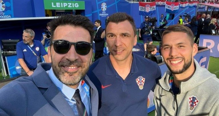 Sat vremena prije početka dvoboja u Leipzigu, na teren su izašlo igrači obje momčadi kako bi osjetili teren, a među njima su bili i članovi stožera obje reprezentacije. Tako je legendarni vratar Italije, a danas dio Spallettijevog stožera, Gigi Buffon na travnjaku vidio svoje bivše suigrače iz Juventusa Marija Mandžukića i Marka Pjacu. Gigi je ”opalio” selfie uz poruku: