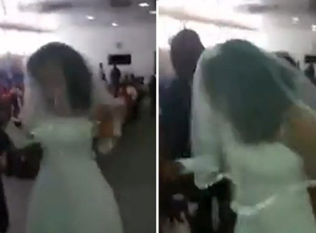 Naime, na videu koji kruži Twitterom vidimo ženu odjevenu u bijelo kako ležerno ulazi u prostoriju u kojoj su okupljeni ljudi. Ona ubrzo napravi scenu, dok je muškarac pokušava smiriti i odmaknuti. U pozadini se prvo čuje žamor ljudi, a onda sve glasnija graja i navijanje. Doznajemo da je muškarac koji se svađa sa ženom mladoženja, a zatim se na snimci pojavljuje još jedna dama odjevena u bijelo, mladenka, koja mirno stoji kao da ništa ne razumije.
