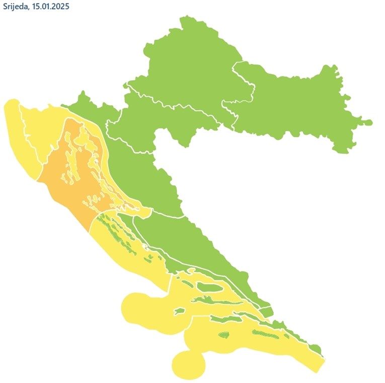 Osim na kopnu, moguć je i snijeg na sjevernom Jadranu, gdje ga može donositi jak vjetar. Na Jadranu će puhati umjerena i jaka bura, s mjestimično olujnim udarima, dok će vjetar na kopnu uglavnom biti slab.