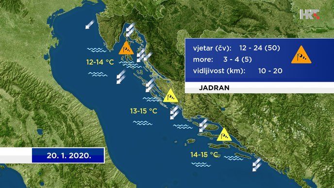 I na jugu Hrvatske većinom sunčano s umjerenom i jakom burom. Jutarnja temperatura od 4 do 7 °C, a najviša dnevna između 10 i 12 °C.”