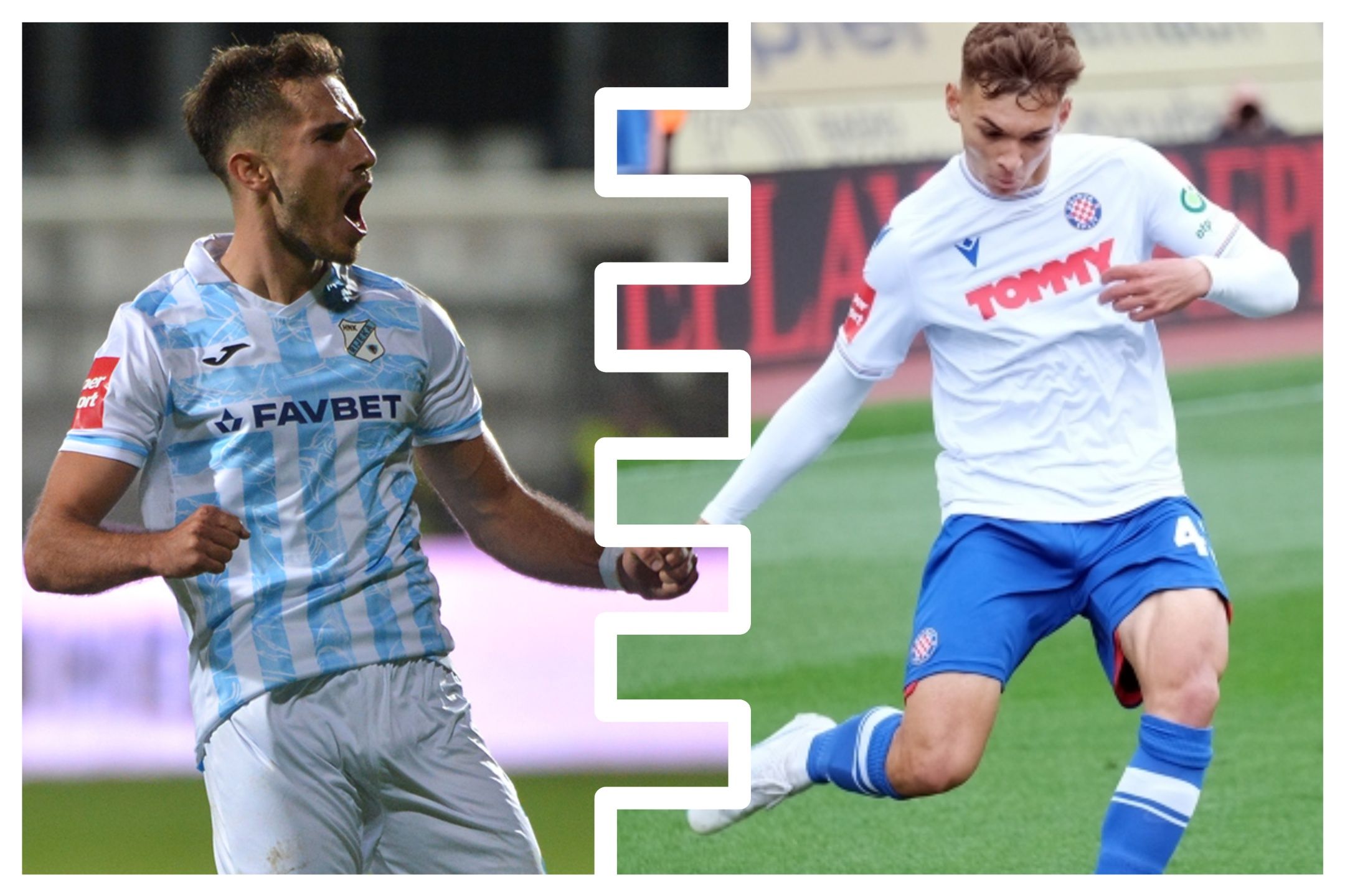 Bruno Goda (26) je lijevi bočni Rijeke. Ove sezone ima samo jedan nastup i to protiv niželigaša Neretvanca u SuperSport Hrvatskom nogometnom kupu. Niko Sigur (21) je desni bočni Hajduka s devet nastupa i dva gola ove sezone.