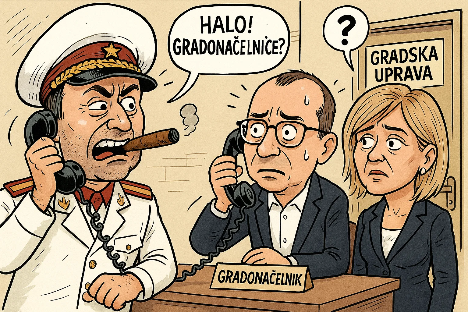 Službenica: Ne, ne, ne, nikako ne. Jedino da vam dam broj tajnice nove gradonačelnice.