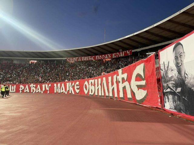 Nakon što je prošla točno 31 minuta šutnjt, Delije su razvile veliki transparent s porukom ‘Još majke rađaju Obiliće’.