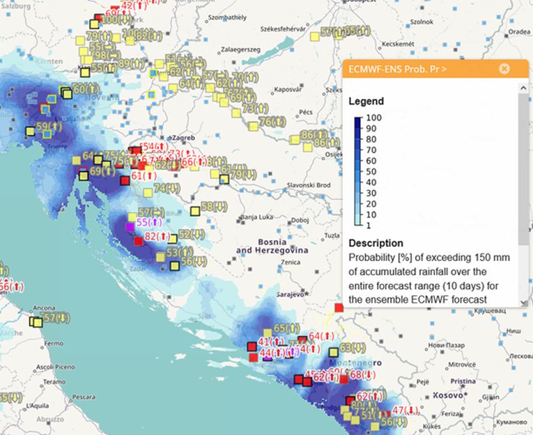 Prognozirane količine oborina, prema Europskom centru za srednjoročne vremenske prognoze (ECMWF), iznose više od 150 mm u deset dana, što povećava rizik od velikih voda u slivovima rijeka kao što su Rječina, Kupa, Mura, Drava i mnoge druge.