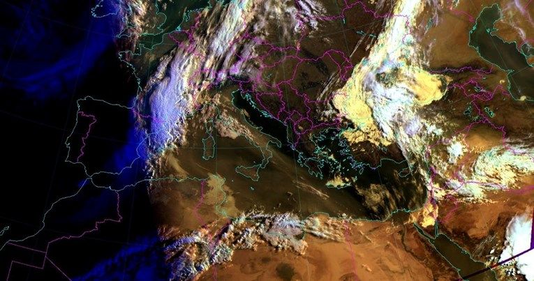 Državni hidrometeorološki zavod (DHMZ) upozorava da će se saharski pijesak ponovno proširiti nad područje Hrvatske. Prema objavljenim informacijama, satelitska snimka jasno pokazuje dotok saharskog pijeska preko Sredozemlja, koji će već noćas početi stizati i do naših krajeva.