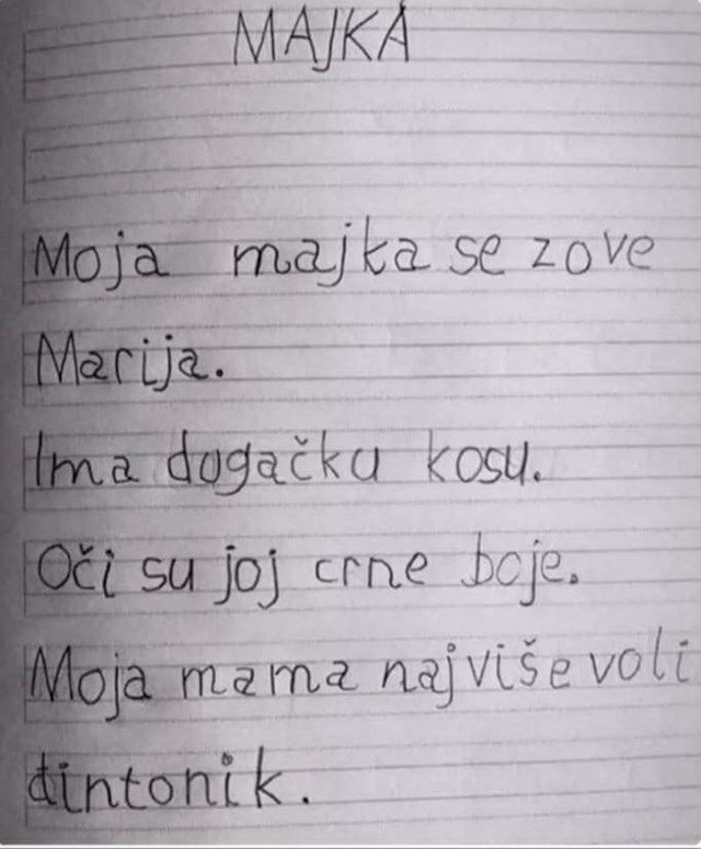 Home Mozaik Dijete je u sastavu na temu “Majka” otkrilo više nego što je... Mozaik Dijete je u sastavu na temu “Majka” otkrilo više nego što je trebalo, ovaj domaći uradak nasmijat će vas do suza! By m s - February 28, 2025 0 FacebookTwitterPinterestWhatsAppTelegram d1ae2586 02d3 4f9a b4e6 5060a30248b3 Najzabavnije je kada djeca svojim nevinim riječima nenamjerno nekoga “odaju”… Ovaj put na meti je bila jedna mama, ali barem je sve završilo u smijehu! dd844bf9 f3c1 4181 be03 4f6586fdd0be