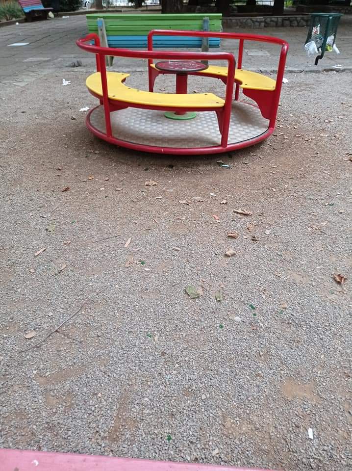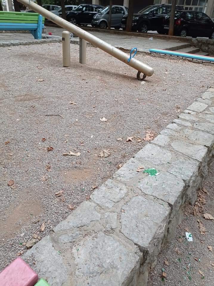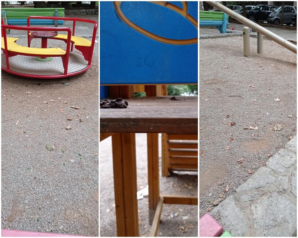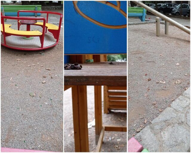 O sramotnom stanju u parku Školjić preko puta OŠ Nikola Tesla piše Barbara Ban na našoj facebook grupi Dnevna doza riječkog nereda. Park je pun razbijenog stakla, pobacanog smeća, a kao šlag na kraju još i pokakan tobogan.