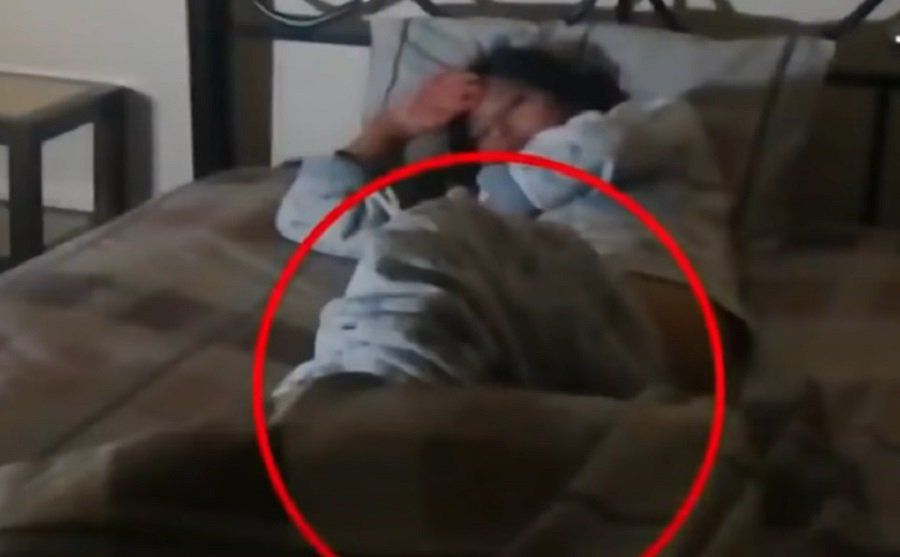Na snimci se vidi kako se dekica kojom je djevojka pokrivena bila postupno spuštala, a potom se isto dogodilo i s pidžamom.