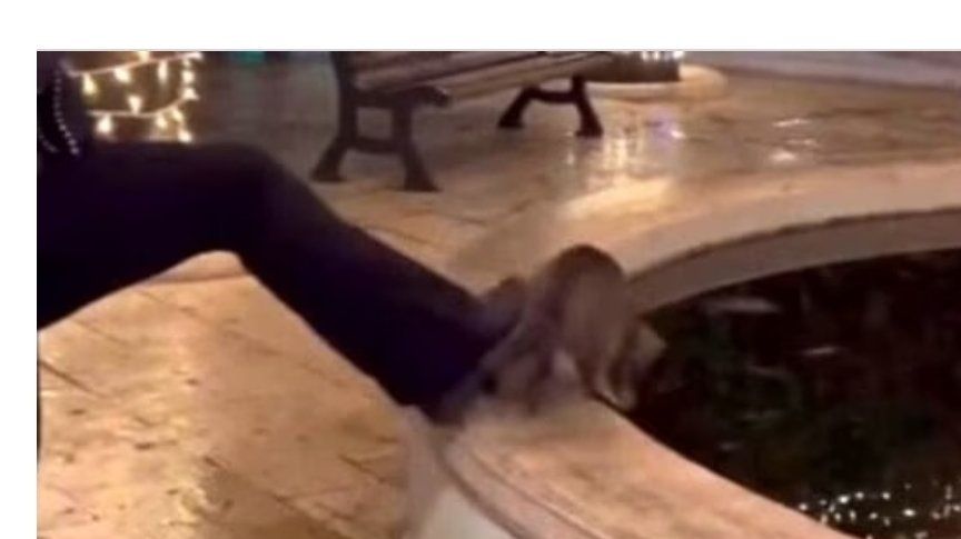 Mačka pogođena nogom djevojke koja se smije dok životinja završava u ledenim vodama gradske fontane, smrzavajući se i utapajući se do smrti.
