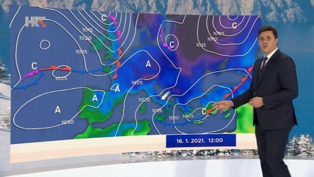 “U najhladnijem smo razdoblju dosadašnjeg dijela zime. Sunce kada se i ukaže bude zubato, tu i tamo padne malo snijega”, komentirao je i istodobno prognozirao vrijeme ovih i budućih dana Izidor Pelajić, mag. phys. – geophys. iz DHMZ-a u emisiji “Vrijeme” uoči Dnevnika u 19 sati, i nastavio: “Jutarnja temperatura zraka na kopnu je između -10 i -5 °C, u gorju i niža, dnevna svega oko 0 °C, a jutarnjih minusa ima i na Jadranu. Povremeni sjeverac i bura pojačavaju dojam hladnoće. Bez znatnije promjene – uglavnom u nedjelju uz mjestimične oborine – bit će do utorka, kada slijedi zatopljenje s jugozapadnjakom i jugom, te češćim oborinama, osobito u južnijim krajevima unutrašnjosti i na Jadranu, gdje će južina biti još izraženija nego na kopnu.”, piše HRT.