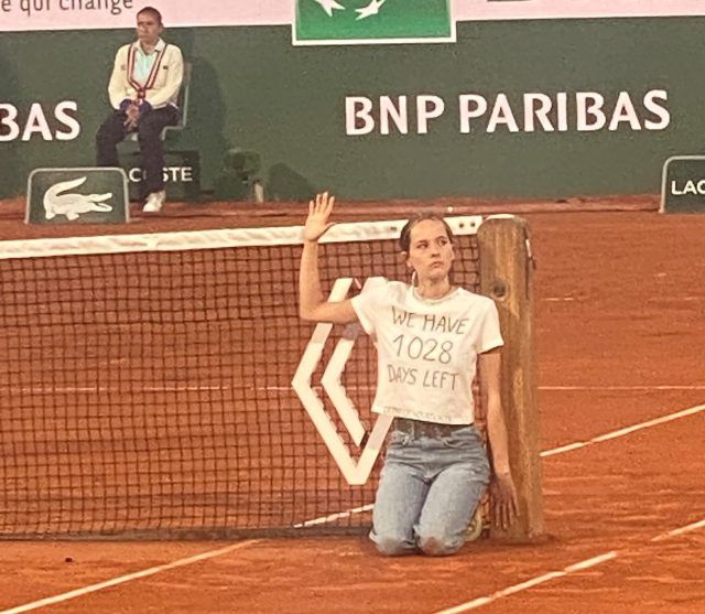 A woman just ran onto the court during Ruud vs Cilic Match to interrupt. Interesting 🤔#RolandGarros#FrenchOpen2022 pic.twitter.com/Md0CmseVqF