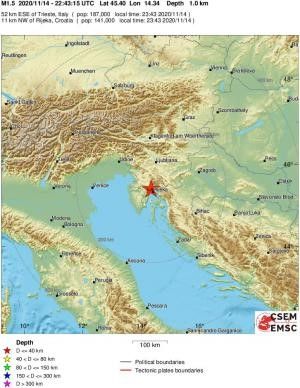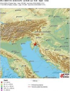 U 23:43 Riječane je uznemirio potres koji se osjetio na cijelom području grada i u prigradu. Prema prvim informacijama, epicentar je bio 12 kilometara sjeverozapadno od Rijeke, jačina 1,7 stupnjeva.
