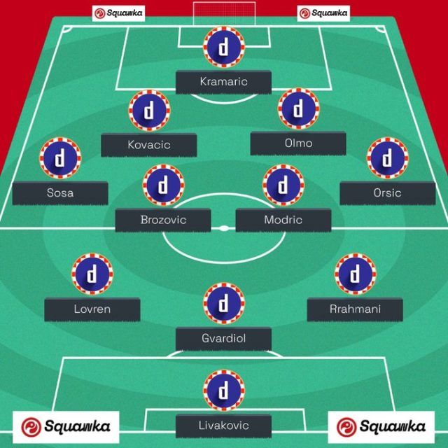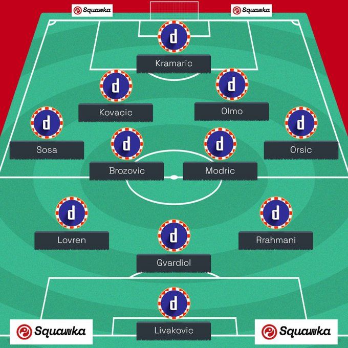 Na poziciju lijevog bočnog Englezi su stavili Bornu Sosu, igrača Stuttgarta, koji je za Dinamo odigrao 41 utakmicu prije odlaska u Njemačku. Na suprotnoj strani je Mislav Oršić, igrač Southamptona i legenda kluba. U veznom redu je i najjača okosnica treće reprezentacije svijeta – trio Luka Modrić – Mateo Kovačić – Marcelo Brozović.