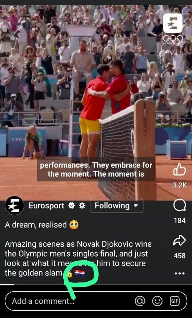 Eurosport je posvetio objavu Đokoviću nakon osvajanja olimpijskog zlata. U svojoj objavi napisali su: “San koji je ispunjen. Gledali smo nevjerojatne scene nakon što je Đoković osvojio olimpijsko zlato. Pogledajte koliko mu je to značilo, sad je osvojio karijerni Golden Slam,” uz sliku Đokovića u suzama. Međutim, uz tu objavu postavili su hrvatsku zastavu umjesto srpske, što je izazvalo val reakcija.