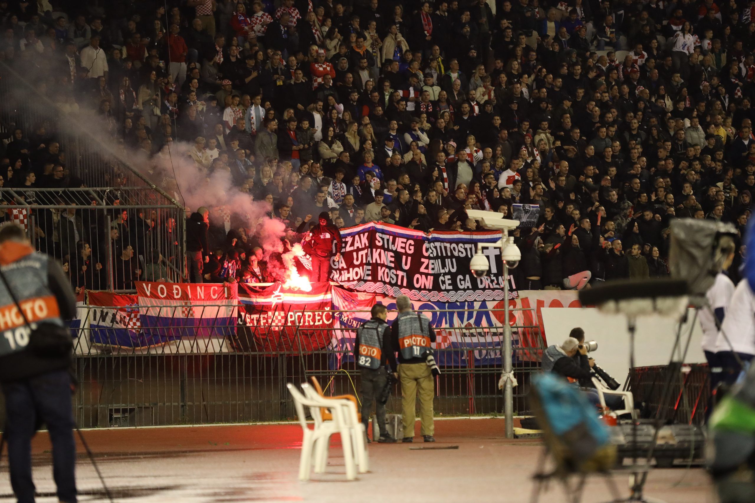 Početak utakmice na Poljudu bio je neuobičajen. Dok su portugalski navijači sa zapadne tribine glasno podržavali svoju reprezentaciju bubnjevima, kod hrvatskih navijača nije bilo organiziranog navijanja. No, to nije bila slučajnost, već promišljena odluka. Naime, hrvatski navijači dogovorili su se da neće navijati do 33. minute utakmice kako bi na taj način odali počast 33. obljetnici pada Vukovara, žrtvama iz Škabrnje i svim stradalima u Domovinskom ratu.