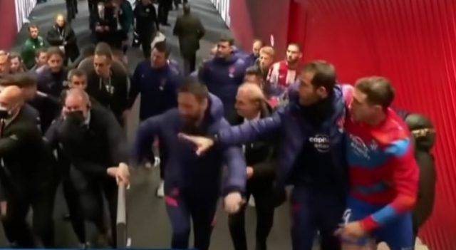 “Čini se da je on signalizirao Atleticovom braniču Šimi Vrsaljku da se nađu niže u hodniku. Vidi se kako 36-godišnjak maše i upire prstom prema vrhu stepenica dok gleda u Hrvata, koji je postao jako ljutit”, piše Express.