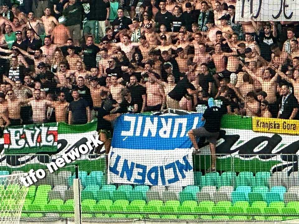 U prvom poluvremenu navijači Olimpije, poznati kao Greend Dragonsi, provocirali su Armadu navodno otetim transparentom pod nazivom “Incidenti Turnić”, koji su na kraju zapalili. Gubitak transparenta predstavlja najveće poniženje za svaku navijačku grupu, koja se prema navijačkom kodeksu nakon takvog incidenta mora ugasiti.