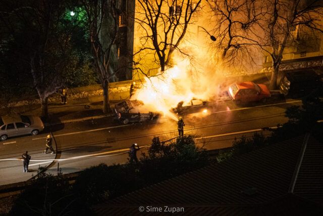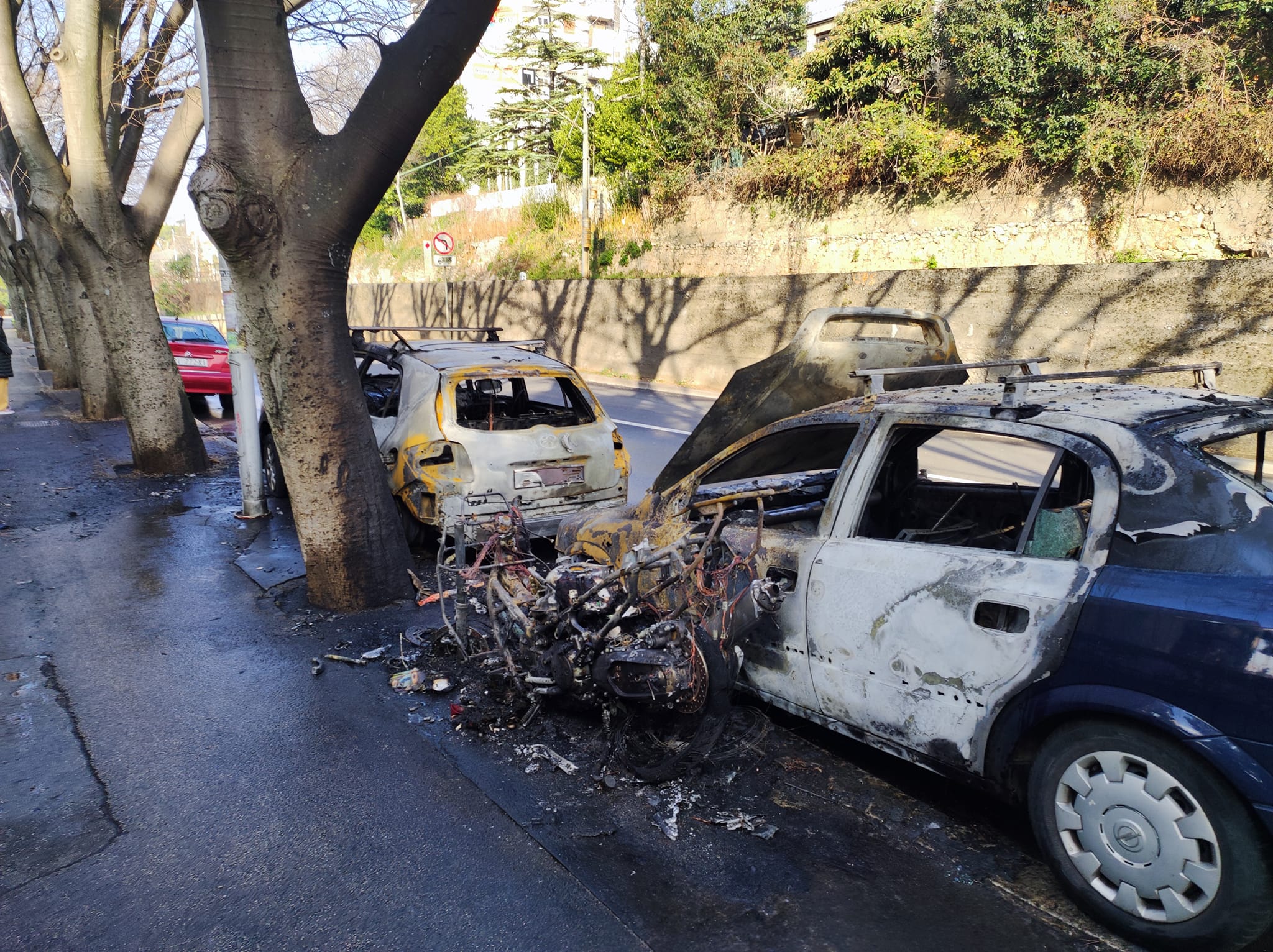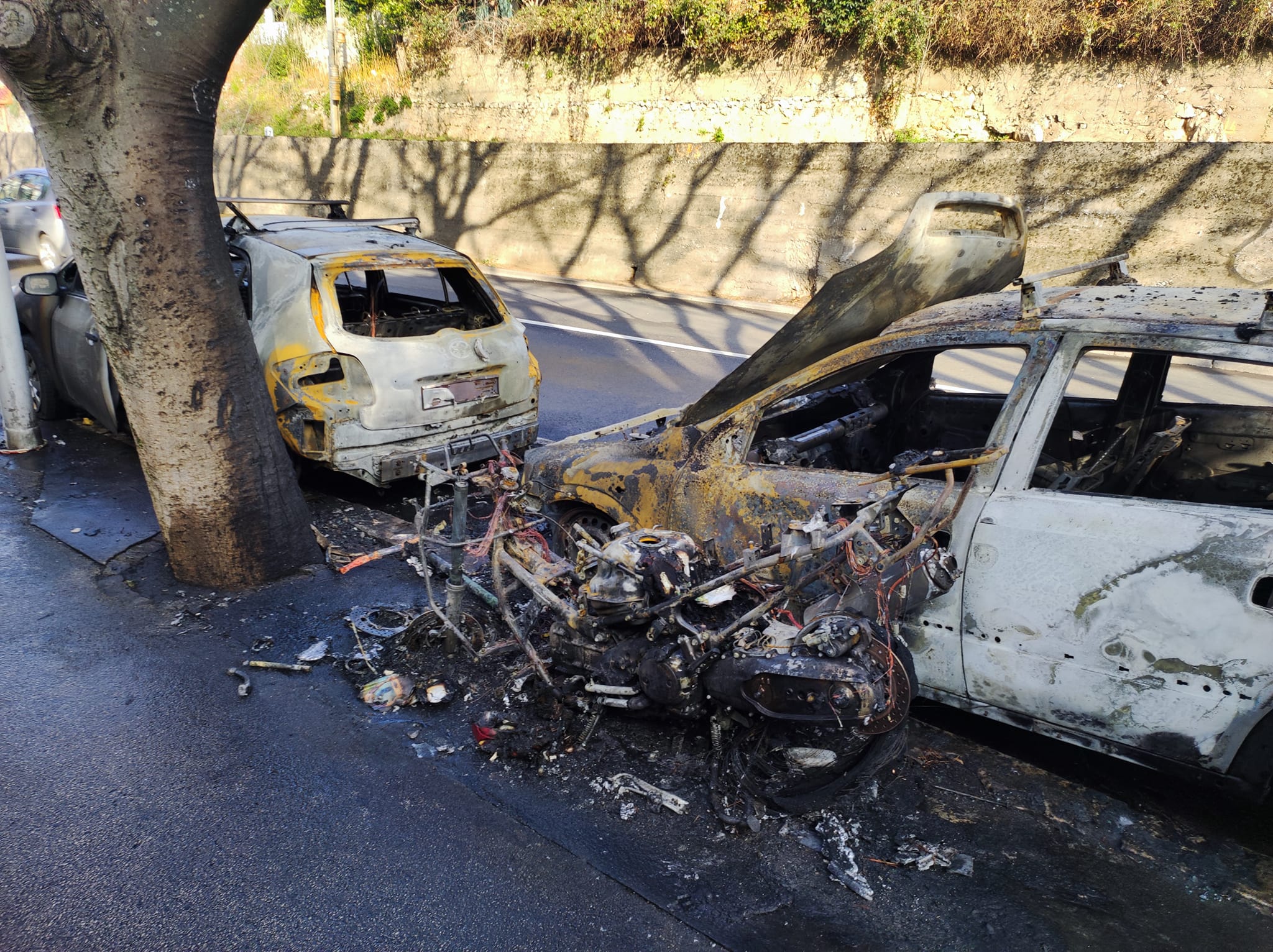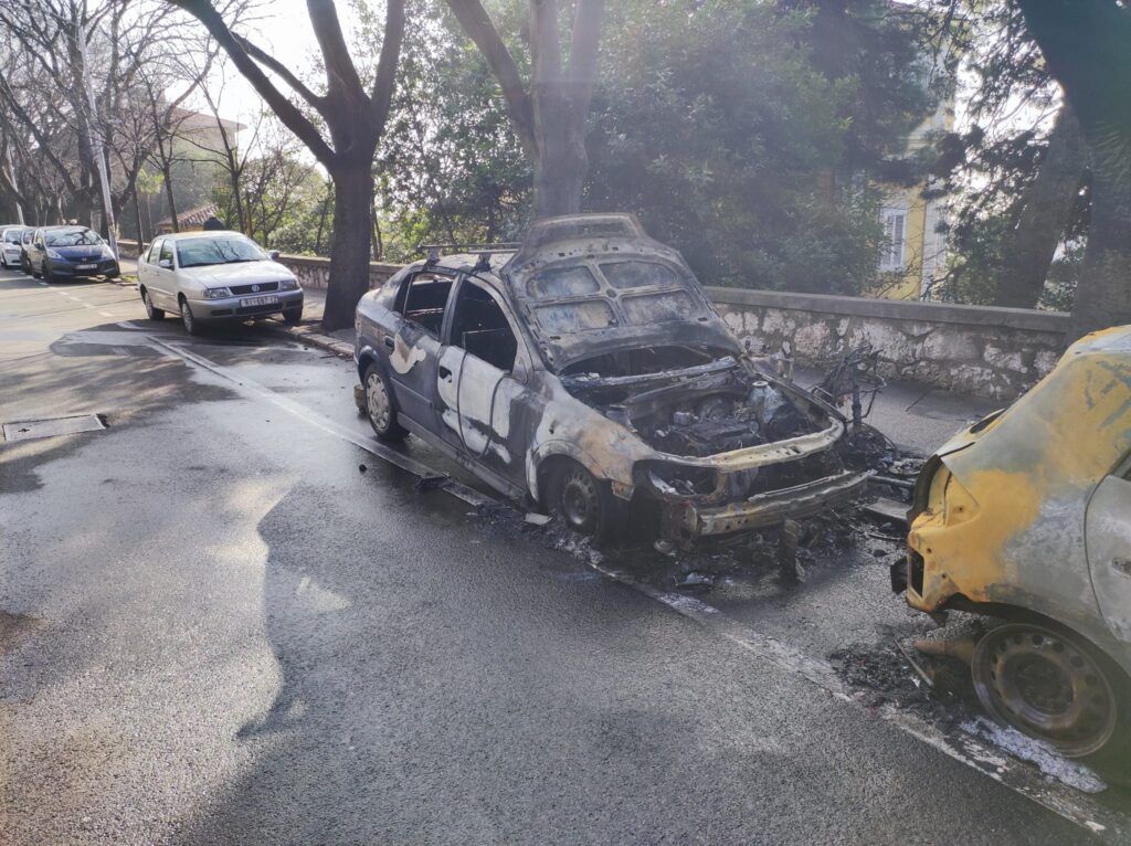 Dva automobila i maksi skuter uništeni su do neprepoznatljovsti u požaru koji ih je zahvatio noćas dok su bili parkirani u Ulici Janka Polića Kamova u Rijeci. Odmah nakon požara javile su se sumnje da je požar podmetnut. Tome u prilog ide i priopćenje Policijske uprave primorsko-goranske, objavljenim za kasnog prijepodneva, u kojem se navodi kako je očevidom isključen tehnički uzrok izbijanja požara. (Foto: Fb/Problemi u prometu/Rijeka i okolica)
