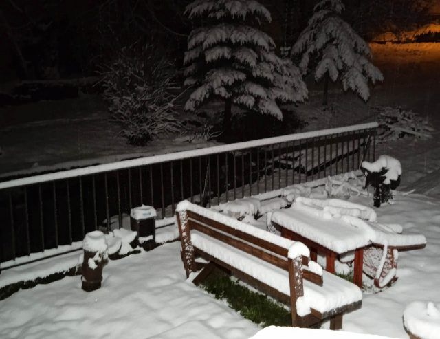 Gorski kotar našao se u nedjelju ujutro pod nekoliko centimetara snijega. Ovako je sinoć bilo u Lokvama.