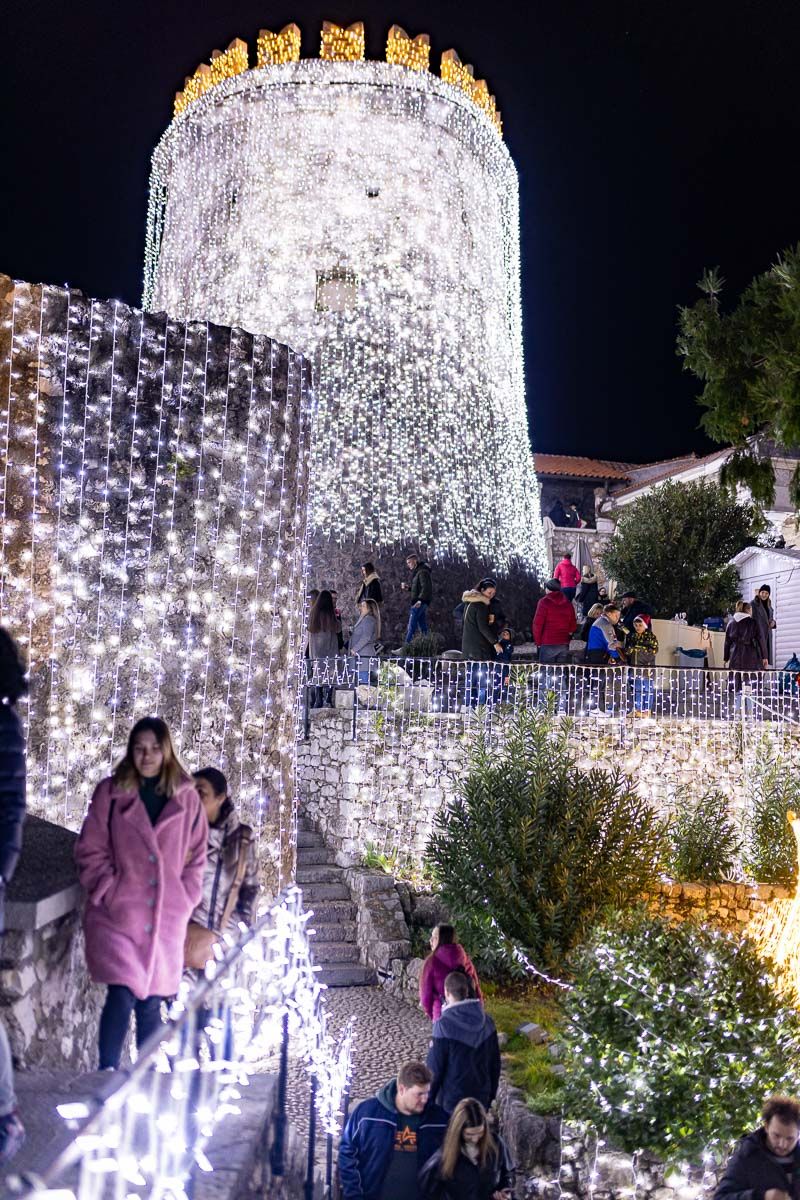 Jučer je Trsatska gradina zasjala dosad neviđenim sjajem, a posjetitelji su pohrlili na Trsat kako bi svjedočili svečanom trenutku paljenja čak 12 kilometara lampica. Svi prisutni zajedno su odbrojavali sekunde do paljenja lampica, a Gradina je svojim šarmom opet ostavila bez daha! Početak Adventa na Gradini popraćen je veličanstvenim vatrometom, zbog čega se jučerašnje prizore s Trsata moglo vidjeti čak i u centru grada. Posebna atrakcija ovogodišnje božićne bajke – veliki poklon u tisućama lampica, bio je najpoželjnija kulisa za fotografiranje. Novi foto point u Miru junaka bio je jedan od posjećenijih punktova na Gradini, a posjetitelje su oduševile i unikatne božićne jaslice koje su se ovoga puta smjestile u spilju.