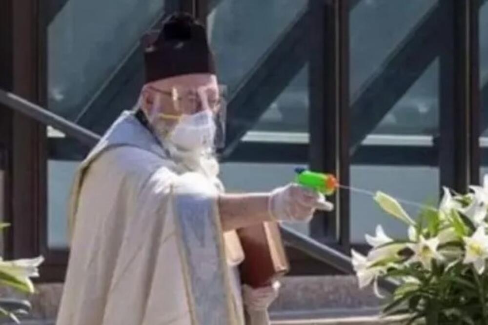 Peltz je stvorio poligon za vjernike da sa sigurne udaljenosti vodenim pištoljem blagoslivljaju svoje uskrsne košare, a čak se i posavjetovao s liječnikom hitne pomoći kako bi bio siguran da nikoga ne dovodi u opasnost.