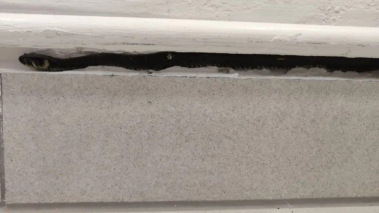 “Neobičan ulov iz jednog autocentra u Maksimiru! Tamošnji su nam djelatnici javili da im se u prostor uvukla zmija. Došli smo i ugledali bjeloušku kako se skriva iza cijevi centralnog grijanja. Neuspješno.