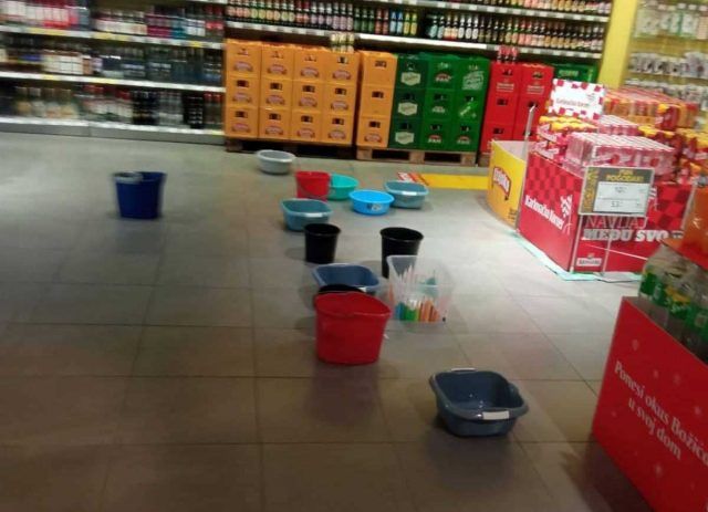 Veliki trgovački centar u Krku zadnjih je dana priredio pravu izložbu lavora i padela, koje kao u nekoj društvenoj igri treba preskakati, javlja naš dopisnik s otoka Krka. Tim lavorima hvataju vodu koja kaplje sa stropa što pod čini klizavom površinom pa je igra još dinamičnija. Nadamo se da će uskoro krov biti popravljen da se netko ne polomi u ovoj igrici. (dp)