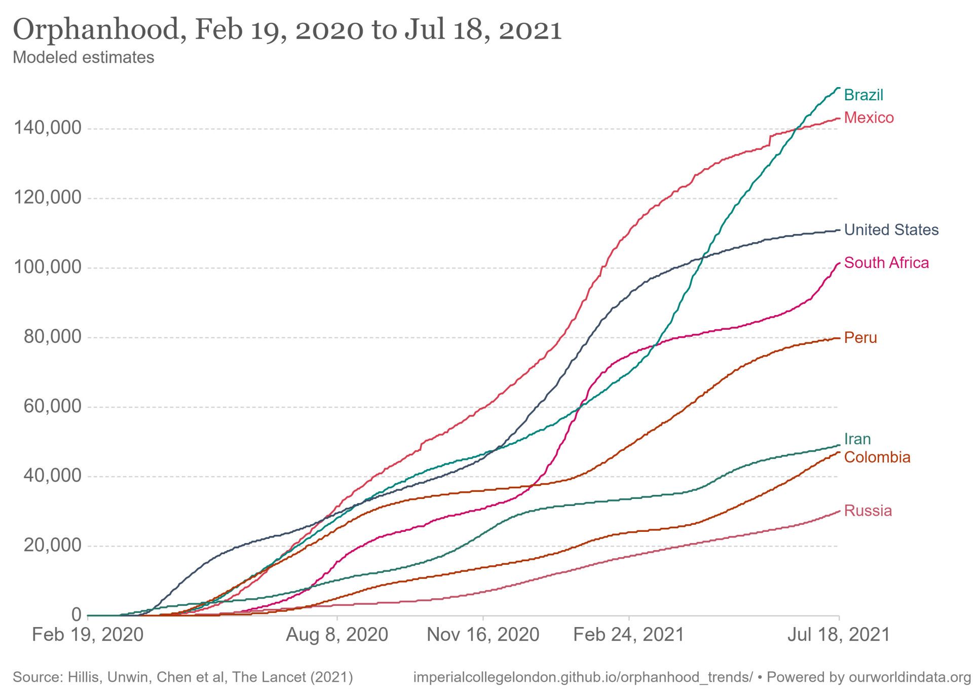 Procjenjuje se da je zbog bolesti COVID-19 1,5 milijuna djece širom svijeta izgubilo roditelja, djeda ili baku skrbnike ili drugog rođaka koji su se o njima brinuli.