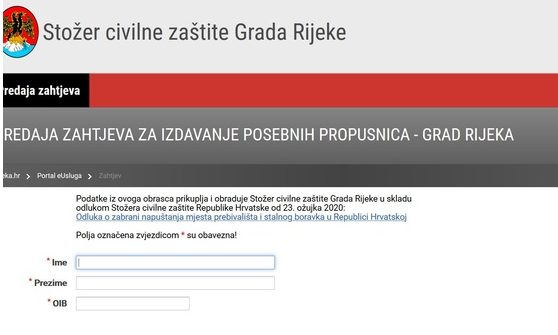 Od 25. ožujka u funkciji je jednostavni online formular/aplikacija za izdavanje propusnica za građane Rijeke koji moraju napuštati grad zbog specifičnih razloga.