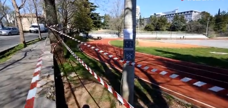 Dječja igrališta ograđena su trakama te su istaknute obavijesti o zabrani korištenja.